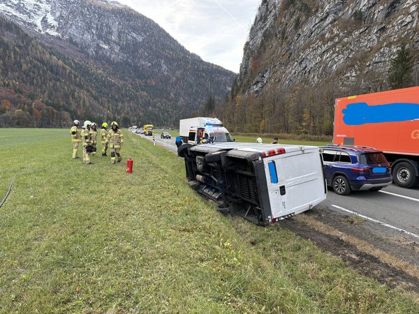 Die Feuerwehr Saalfelden und die Feuerwehr Weißbach wurden am 29.10.2025 um 15:52 zu einem Verkehrsunfall auf die B311 im Bereich Weißbach-Frohnwies alarmiert. Am Einsatzort war ein Transporter umgekippt, die Insassen waren bereits außerhalb des Fahrzeuges.