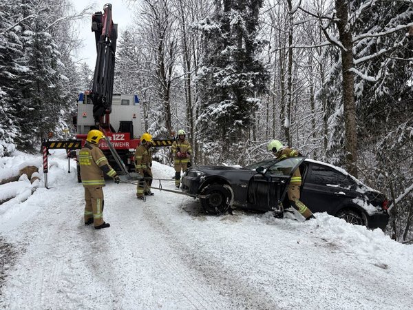 Die Feuerwehr Saalfelden wurde am 09.01.2026 um 14:21 Uhr zu einer Fahrzeugbergung im Bereich Biberg alarmiert.