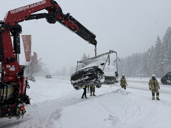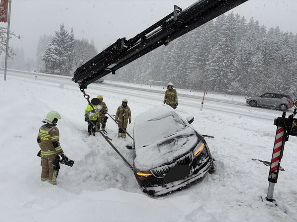 Die Feuerwehr Saalfelden musste am 09.01.2026 auf Grund der Witterungsverhältnisse zu mehreren Fahrzeugbergungen ausrücken.