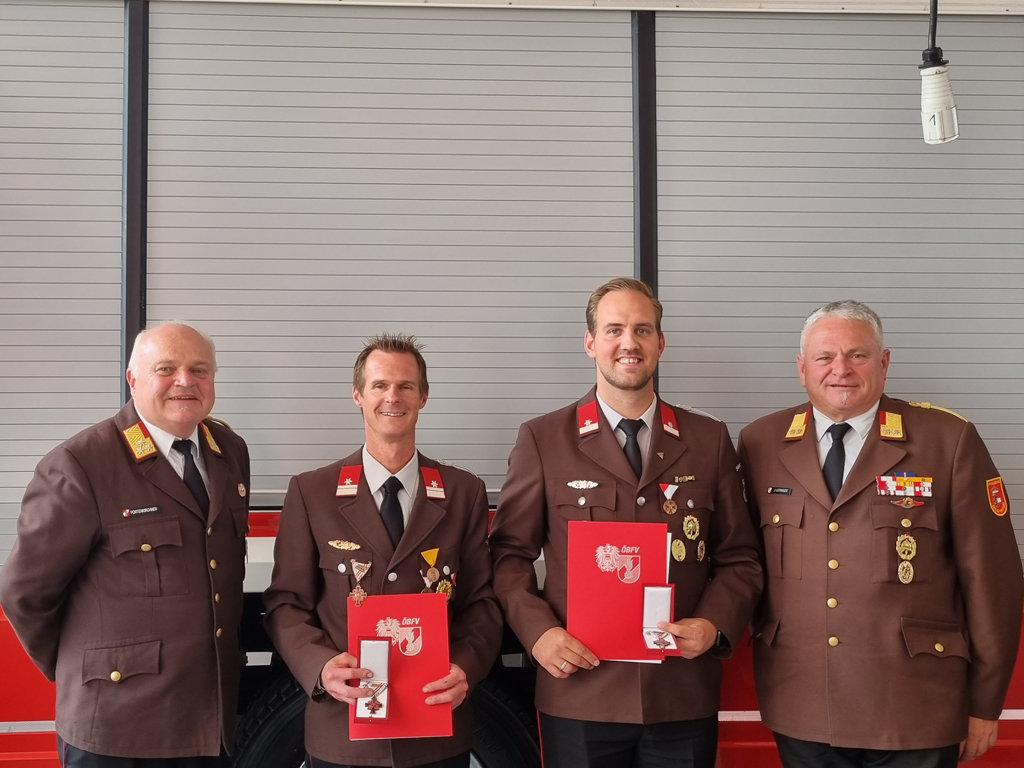 Alle eingesetzten Kamerad:innen erhielten das Katastrophen-Verdienstzeichen vom Österreichischen Bundesfeuerwerhrverband und dieses wurde von der Landtagsabgeordneten Frau Mag. Martina Jöbstl, welche stellvertretend für Herrn Landeshauptmann Dr. Haslauer anwesend war, und Herrn Landesfeuerwehrkommandant LBD Günter Trinker überreicht.